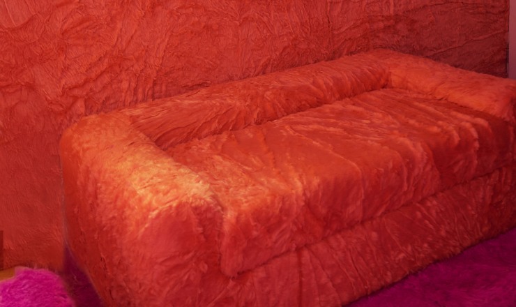 - Entire room covered in peachy-pink and blush fur walls & floors