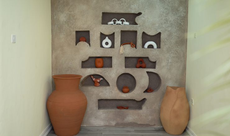 - Textured clay hand made pottery and abstract elements